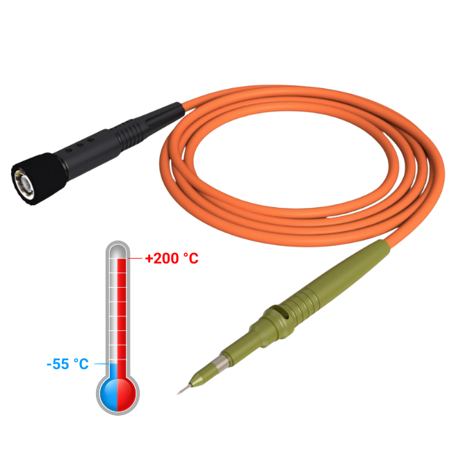 The ENVI® passive probe is the world’s first modern probe designed for such an extreme temperature range, operating reliably from –55 °C to +200 °C (PUHT variant) or from –55 °C to +155 °C (PHT variant). With a 400 V / 1250 V peak input range, 10:1 divider, and 500 MHz bandwidth, it delivers precision and durability.